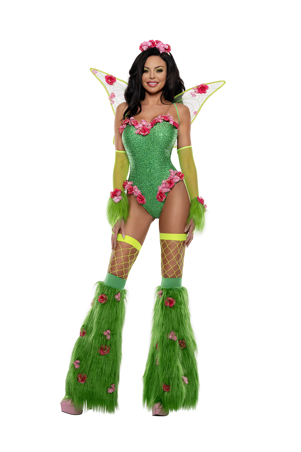 • Comes with matching headpiece, wings, fishnet gloves, fur wristlets and furry boot covers